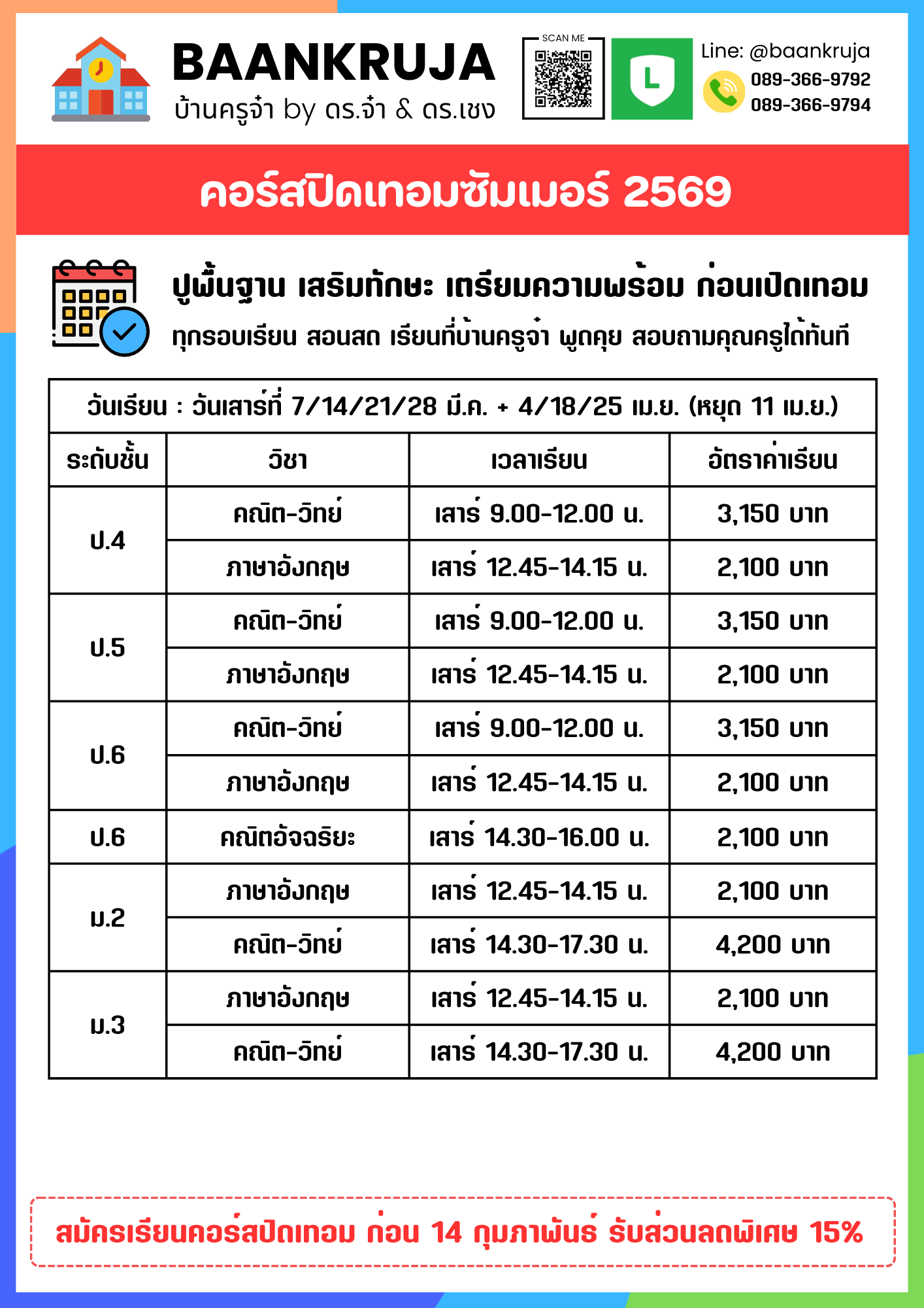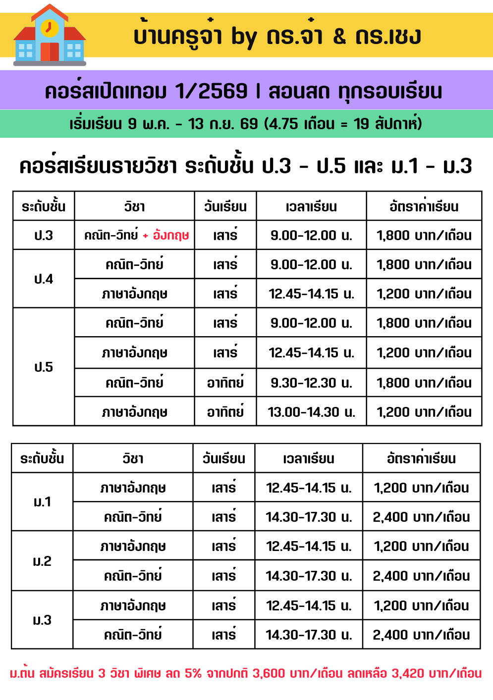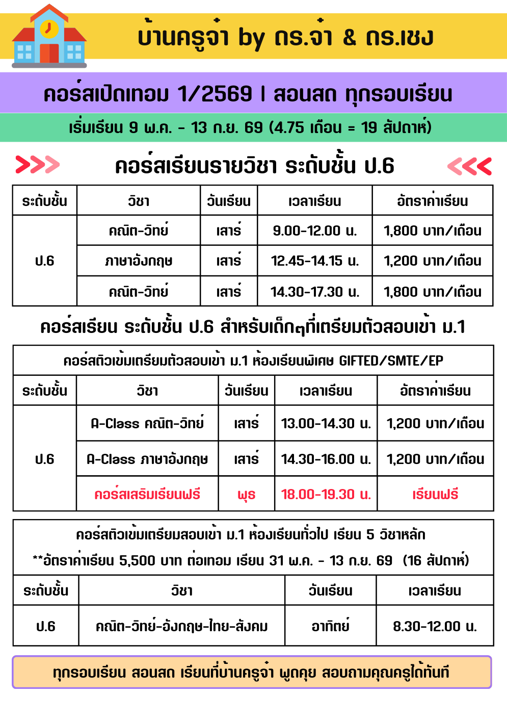 คอร์สสอนสดทุกระดับชั้น